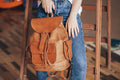 This handmade backpack is manufactured from high-quality leather. It consists of one capacious section and has three additional pockets – larger one on the front and two smaller ones on both sides. This backpack closes on reliable clasps that provide secure storage of your belongings. It holds the form perfectly, so you can be sure that your stuff is not hurt or damaged.