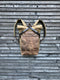 This medium size backpack is made from waxed canvas in the color spice with an outside pocket made in British waxed canvas color burned umber, with a layer of leather in front of the pocket.
